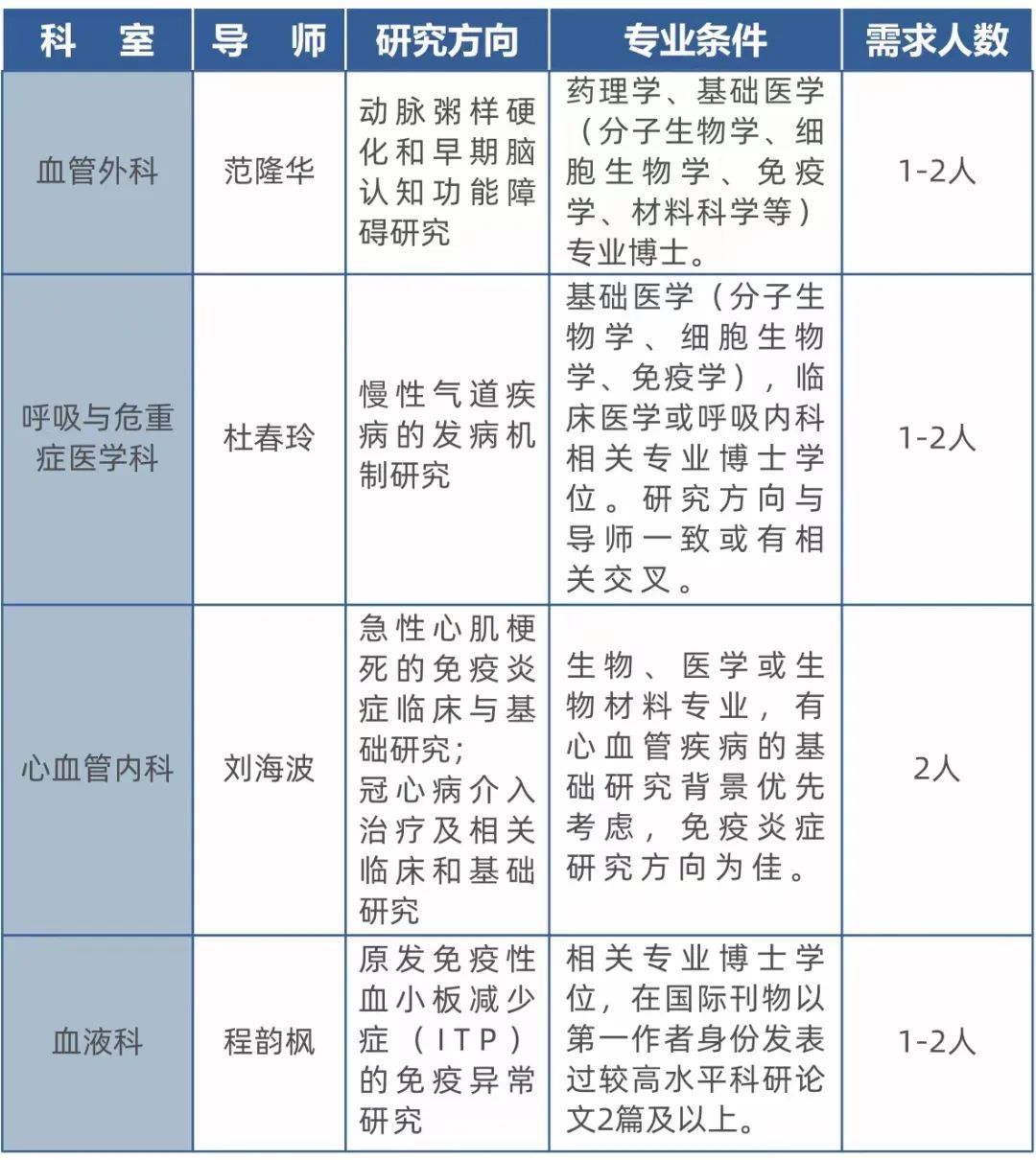 博士后在站期间,医院提供一次性科研启动经费:10万元/人。